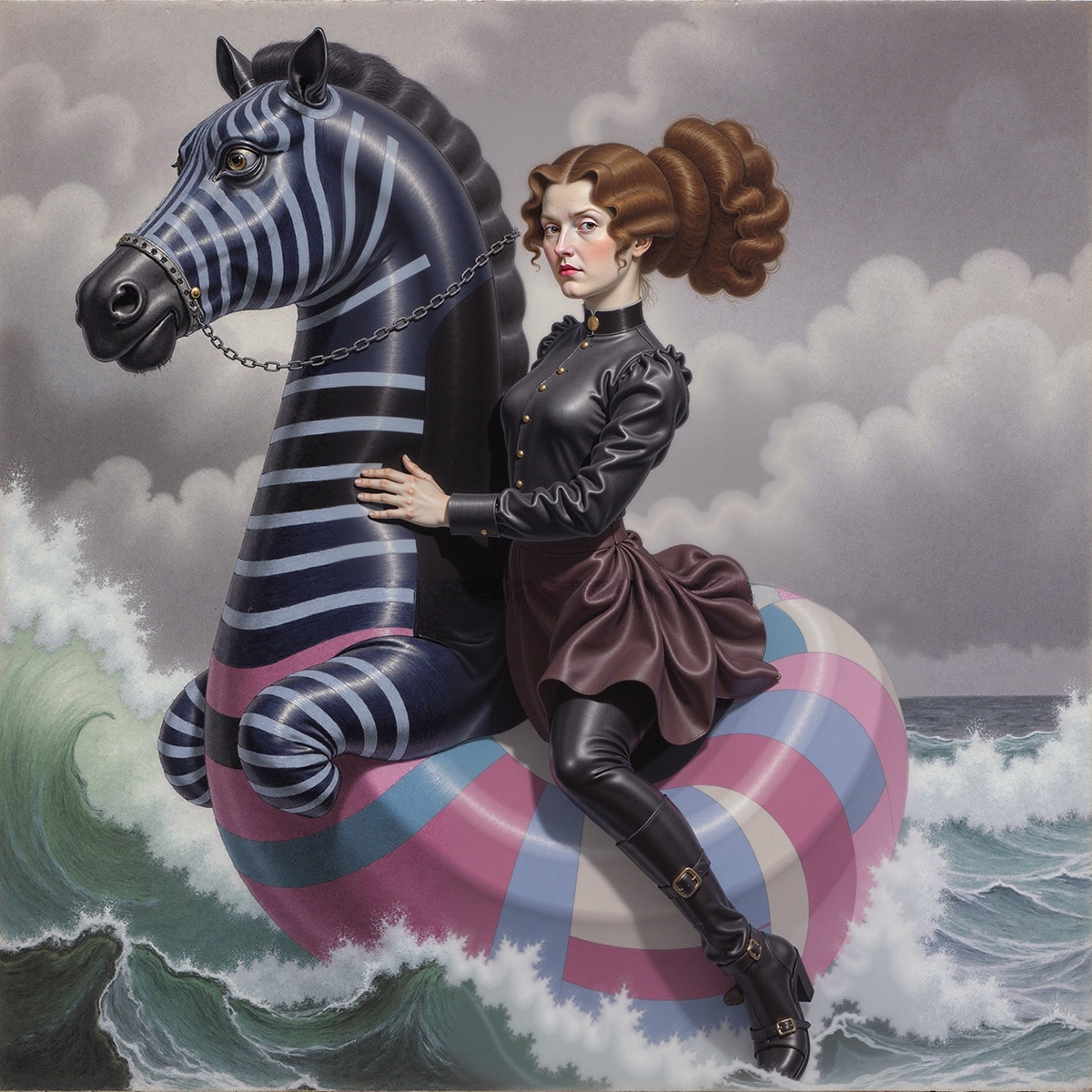 Il mio approccio ibrido nasce dalla necessità di superare i limiti della pittura tradizionale senza tradirne la storia e il linguaggio. Ho iniziato studiando le tecniche classiche della pittura a olio, approfondendo i metodi rinascimentali e il sistema dell’atelier, ma al tempo stesso sono sempre stato affascinato dalle possibilità offerte dalla tecnologia. L’intelligenza artificiale e i modelli di diffusione mi permettono di sperimentare rapidamente e di esplorare nuove forme, non come sostituti della pittura, ma come strumenti per ampliare il processo creativo. In fondo, questo utilizzo dell’IA è una sorta di versione contemporanea dello schizzo rinascimentale. Un momento decisivo in questa evoluzione è stato il passaggio dalla reinterpretazione di composizioni storiche alla creazione di opere completamente nuove, libere da riferimenti diretti.